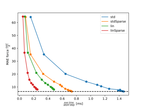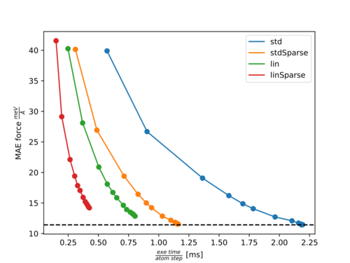 This can consist of many different training steps that include all the desired structures. Increasing ML_MRB1 from 8 to 12 and decreasing ML_SION1 from 0.5 to 0.3 improves the condition number of the Gram matrix by about a factor of 10 and allows the sparsification step to retain more local reference configurations (typically by about a factor of 2). Of course, this slows down the force field calculations somewhat.