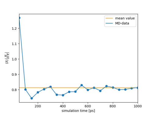 In general, a lot of molecular dynamics steps and a large supercell are needed to get converged results for thermal conductivity. Therefore, convergence analysis is a crucial step when measuring thermal conductivities. To measure the convergence of [math]\displaystyle{ \lambda }[/math] it is recommended to do several MD runs. The thermal conductivity can then be computed with the help of the provided analysis script. It should be noted that the analysis script assumes a linear temperature gradient. Hence, it is essential to check the linearity of the temperature gradient when using the script.