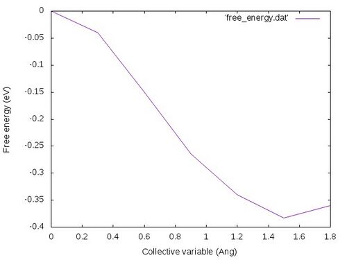 gnuplot -e "set terminal jpeg; set xlabel 'Collective variable (Ang)'; set ylabel 'Free energy (eV)'; set style data lines; plot 'free_energy.dat'" > free_energy.jpg