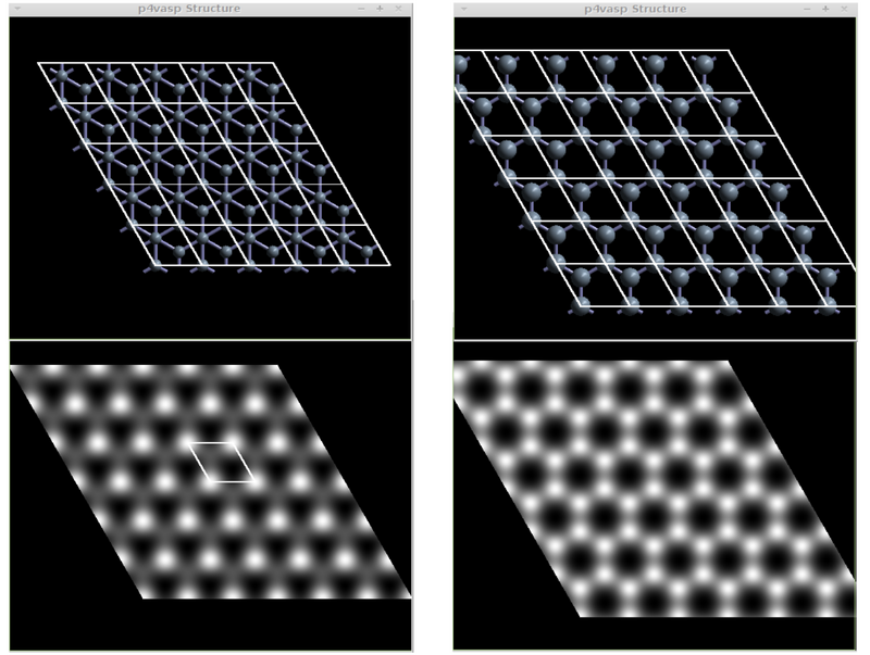 - The sample output for the graphite (left) and graphene (right) STM images should look like the following:
