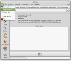 The super cell can be obtained by either taking the file POSCAR.3x3x3 provided with this tutorial or constructing the POSCAR file from the primitive cell using p4vasp, which is demonstrated below: